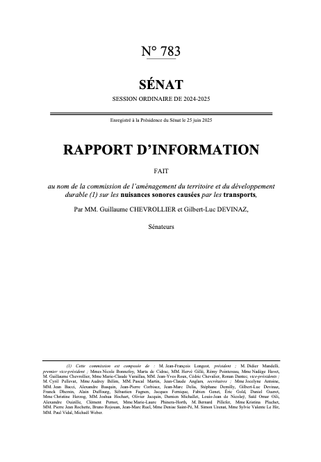 Rapport d'information fait au nom de la commission de l’aménagement du territoire et du développement durable sur les nuisances sonores causées par les transports
