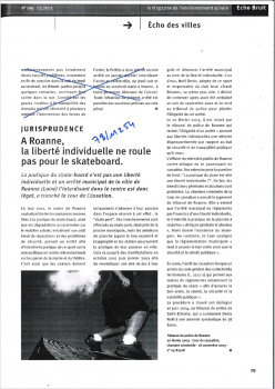 La mairie de Roanne a pris en 2001 un arrêté municipal interdisant la pratique du skateboard en Centre Ville. Un skater est condamné sur la base de cet arrêté, puis relaxé. La cour de cassation confirme en 2003 le bien fondé de cet arrêté. -