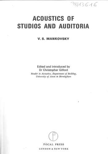Acoustics of studios and auditoria - Mankovsky