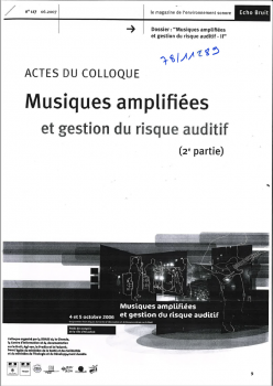 Actes du colloque : Musiques amplifiées et gestion du risque auditif. 2ème partie.