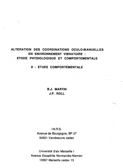 Altération des coordinations oculo-manuelles en environnement vibratoire, étude physiologique et comportementale, partie 2: étude comportementale. In: Huitième symposium Bruit et vibrations, La Rochelle, 21-23 Mai 1990