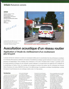 La mesure du bruit de roulement en continu est couramment utilisée pour la caractérisation fine des performances acoustiques de revêtements. La méthode a été étendue à l'auscultation acoustique à grand rendement de réseaux routiers, ce qui permettra de diagnostiquer l'état acoustique d'un revêtement et d'en suivre l'évolution dans le temps. La première partie de l'article présente les principes de cette méthode. La seconde décrit une application de la méthode sur le périphérique de Nantes. Cette voie constitue une mosaïque de sections d'un même type de revêtement peu bruyant (béton bitumineux très mince, BBTM 0/6 de classe 2). L'auscultation acoustique du périphérique a permis de comparer les performances de cette technique routière entre 3 et 9 ans environ. -