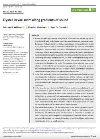 Bien que les huîtres soient des bivalves sans cervelle, elles peuvent « entendre » et nager vers les sons attrayants de la mer. Nous avons joué le crépitement des crevettes qui claquent, ce qui indique un récif sain, aux bébés huîtres à l'aide de haut-parleurs sous-marins. Nous avons découvert les huîtres nager vers le son. Cela ouvre la possibilité de jouer des sons marins pour attirer les huîtres vers les projets de restauration des récifs, accélérant ainsi leur récupération. -