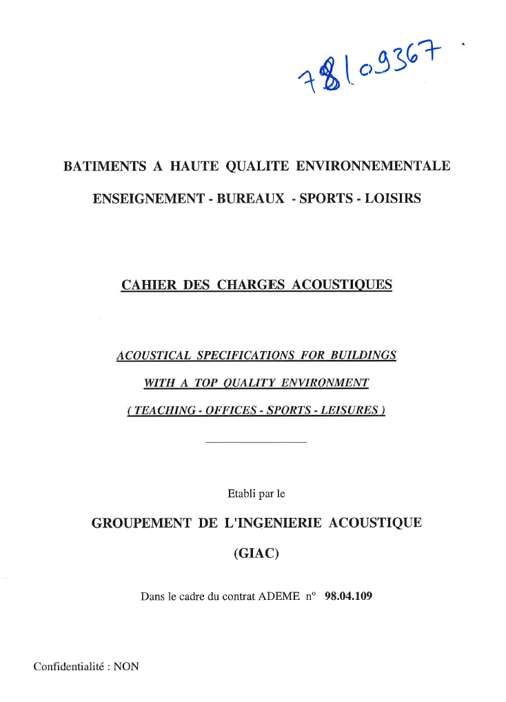 Bâtiment à haute qualité environnementale. Enseignement-bureaux-sports-loisirs. Cahier des charges acoustiques