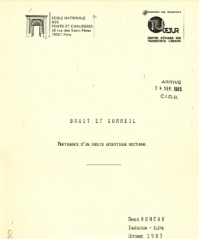 Synthèse bibliographique des résultats de recherches sur la perturbation du sommeil par le bruit, de trafic routier essentiellement, et les caractéristiques que devrait posséder cet indice. -