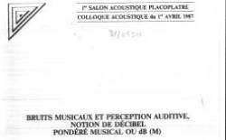 Bruits musicaux et réception auditive, notion de décibel pondéré musical ou dB(M) - In : Colloque Placoplâtre, Paris, 1er avril 1987