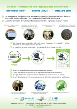 Cette démarche doit s'appuyer sur un plan efficace de prévention contre le bruit qui implique un investissement des commerces de bouche et des transporteurs ainsi qu'un dialogue constructif avec les résidents et les collectivités. Cette charte a pour objectif de faciliter cette démarche en instaurant les éléments de concertation indispensables à les réussite des professionnel soucieux de l'intérêt collectif. -