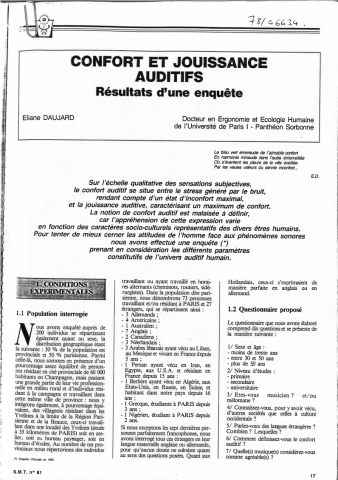 Confort et jouissance auditifs: résultats d'une enquête