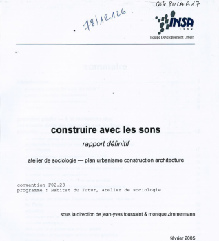 Comment construire avec les sons ? Peut-on même construire avec les sons ? Telle pourrait être formulée l'énigme que six équipes de recherche ont cherché à résoudre et dont les résultats font l'objet du présent rapport. Ces six recherches sont : du confort global au confort sonore dans les écoles maternelles, à l'écoute de l'hôpital, la qualité des ambiances sonores liées aux usages des établissements d'enseignement, le Lyon parc auto, la caractérisation de l'ambiance acoustique par reconnaissance sonore en situation d'immersion, les articulations, limites et inclusions : archétypes et prototypes sonores pour la conception architecturale. -