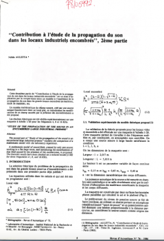 Contribution à l'étude de la propagation du son dans les locaux industriels encombrés