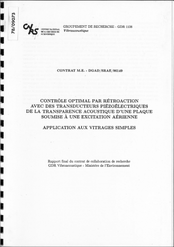 Rapport des travaux menés au LMA dans le domaine du contrôle actif vibroacoustique de structures par rétroaction. Ces travaux ont donné des résultats qui ouvrent la voie vers une application de ces méthodes au contrôle actif de la transparence acoustique de vitrages. -