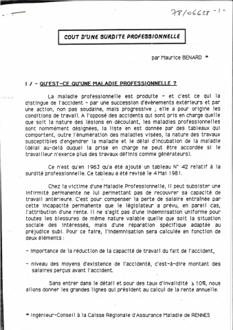 Coût d'une surdité professionnelle. In: Silencinfo, Avignon, 3 septembre 1988