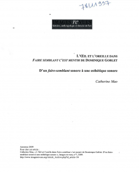 D'un faire-semblant sonore à une esthétique sonore. De L'Oeil et l'oreille dans faire semblant c'est mentir de Dominique Goblet.