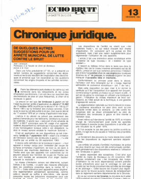 De quelques suggestions pour un arrêté municipal de lutte contre le bruit