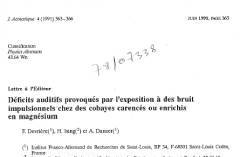 Déficits auditifs provoqués par l'exposition à des bruits impulsionnels chez des cobayes carencés ou enrichis en magnésium