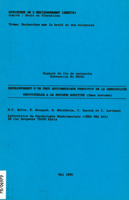 Développement d'un test audiométrique prédictif de la sensibilité individuelle à la fatigue auditive (2ème tranche).