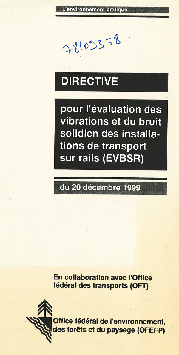 Directive pour l'évaluation des vibrations et du bruit solidien des installations de transport sur rail.