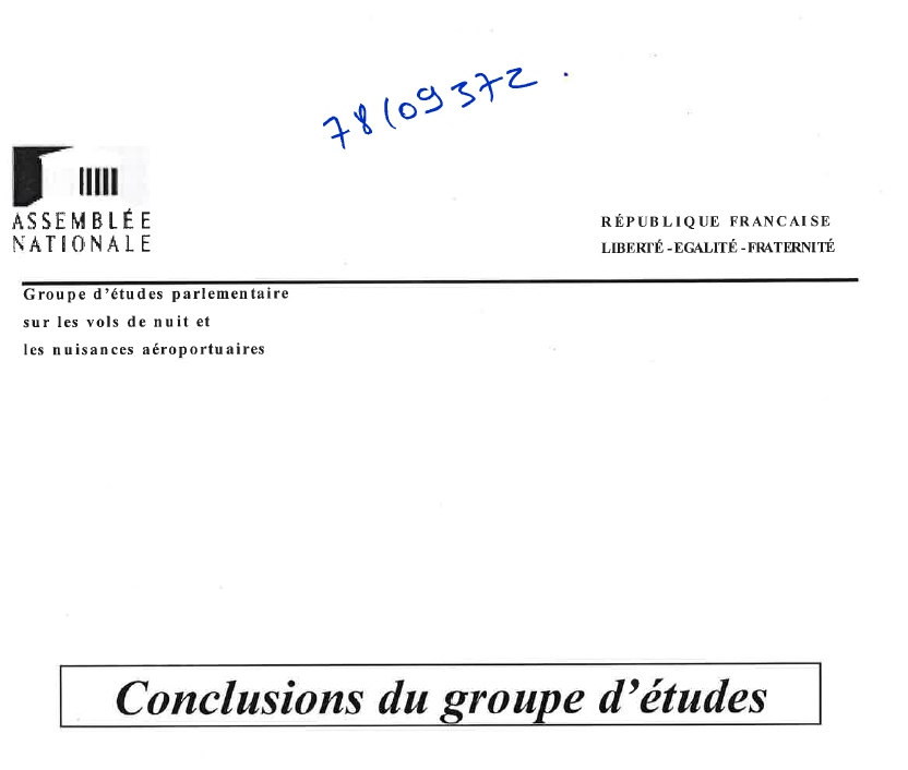Conclusions du groupe d'études sur les vols de nuits. Devant le silence de tous les gouvernants européens et le manque d'ambition des mesures préconisées par la commission européenne, le groupe d'étude appelle les autorités publiques à prendre les décisions nécessaires, qui sont en réalité de nature plus politique que technique ; à s'attacher à convaincre les partenaires européens d'engager un réel débat sur le sujet. -