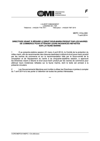 Directives visant à réduire le bruit sous-marin produit par les navires de commerce pour atténuer leurs incidences néfastes sur la faune marine