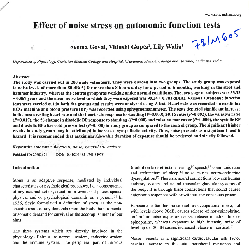 Effect of noise stress on autonomic function tests