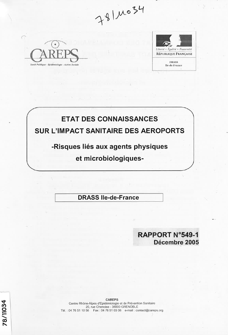 Etat des connaissances sur l’impact sanitaire des aéroports. Risques liés aux agents physiques et microbiologiques