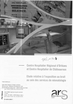 Par le biais de mesurages exhaustifs selon une période représentative, cette étude consiste à quantifier l'exposition au bruit des nouveaux nés au sein d'un service de néonatologie et en ciblant l'exposition au bruit à l'intérieur des incubateurs. 672 heures de mesurages réalisées dans deux établissements de la région Centre (CH de Châteauroux et CHR d'Orléans). -