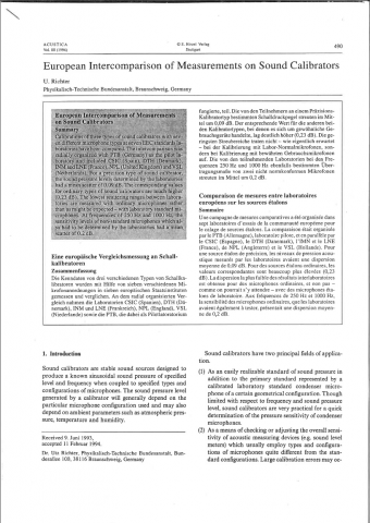 Une campagne de mesures comparatives a été organisée dans sept laboratoires d'essais de la communauté européenne pour le calage de sources étalons. Pour une source étalon de précision, les niveaux de pression acoustique mesurés par les laboratoires avaient une dispersion moyenne de 0,09 dB(a). Pour des sources étalons ordinaires, les valeurs correspondantes sont beaucoup plus élevées. -