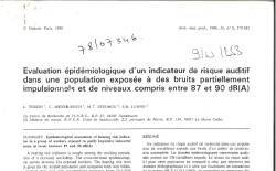 Evaluation épidémiologique d'un indicateur de risque auditif dans une population exposée à des bruits partiellement impultionnels, et de niveaux compris entre 87 et 90 dB(A)
