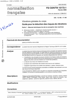 FD CEN/TR 15172-1.Vibrations globales du corps. Guide pour la réduction des risques de vibrations. Partie 2 : Mesures de prévention sur le lieu de travail