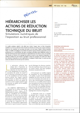 Hiérarchiser les actions de réduction technique du bruit. Simulations numériques de l'exposition au bruit professionnel