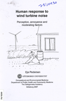 La réponse humaine au bruit des éoliennes : perception, gêne, facteurs modérateurs. Étude menée dans une zone rurale de Suède destinée à estimer la prévalence de la gêne due au bruit et étudier la relation dose/réponse entre le niveau sonore et la perception. On étudie l'influence de facteurs individuels et contextuels : l'influence de la vue, du degré d'urbanisation, de la topographie. -