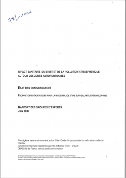 Impact sanitaire du bruit et de la pollution atmosphérique autour des zones aéroportuaires. État des connaissances. Propositions d'indicateurs pour la mise en place d'une surveillance épidémiologique.