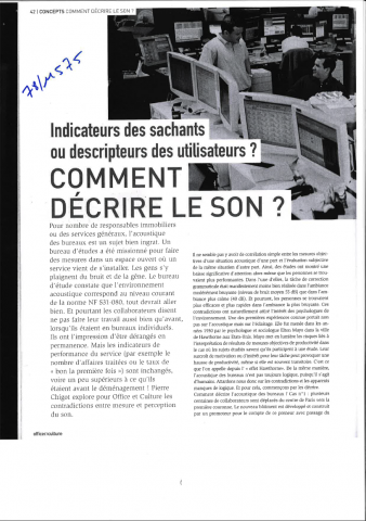Présentation des contradictions entre mesure et perception du son dans un bureau à espace ouvert. En effet pour nombre de responsables immobiliers ou des services généraux, l'acoustique des bureaux est un sujet délicat. Les gens s'y plaignent du bruit et de la gêne. -