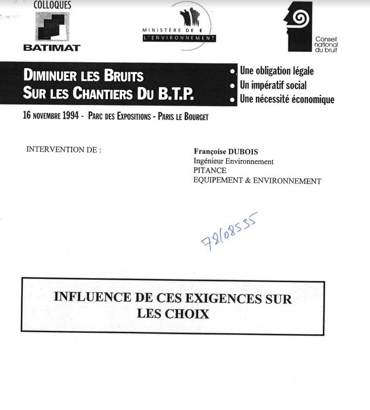 Influence de ces exigences sur les choix . In : Colloque : Diminuer les bruits sur les chantiers du BTP.