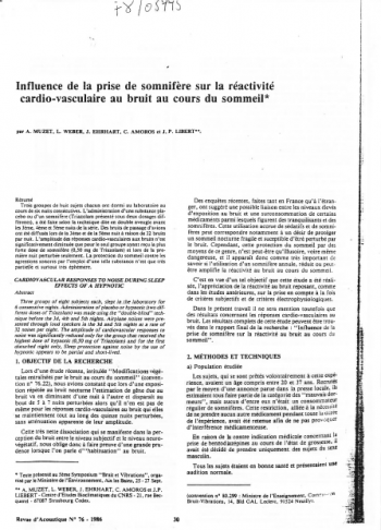 Étude en laboratoire sur 24 sujets pendant six nuits consécutives. Administration d'un somnifère et d'un placebo en double aveugle au cours des trois premières nuits, puis, diffusion de bruits d'avions au cours des trois dernières nuits. L'amplitude des réponses cardiovasculaires n'est pas significativement diminuée et la protection du sommeil par ces substances apparaît très partielle et très limitée dans le temps. -