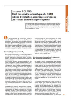 Jacques ROLAND, Chef du service acoustique du CSTB Indices d’évaluation acoustiques européens : Les Français devront changer de système