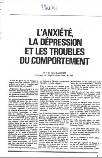 Sensibilisation sur les réactions comportementales et physiologiques provoquées par le bruit sur des sujets prédisposés à mal assumer la nuisance et chez des sujets normalement équilibrés. -