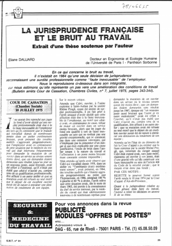 Reproduction intégrale d'un arrêt de la Cour de cassation du 10 juillet 1975 reconnaissant une surdité professionnelle comme faute inexcusable de l'employeur. -