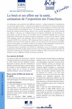 Ce document propose de présenter tout d'abord les connaissances issues de la littérature scientifique internationale concernant les effets sanitaires du bruit, avant de fournir quelques éléments permettant de caractériser l'exposition des Franciliens au bruit des transports. Ensuite, les moyens de lutte contre les nuisances sonores, à différentes échelles territoriales, sont décrits. -