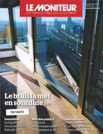 Dossier de la revue Le Moniteur sur l'acoustique. Vous découvrirez un entretien avec Valérie Rozec, psycologue de l'environnement au CidB ainsi que différents articles sur les thèmes suivants : les innovations de demain en terme d'acoustique, des maétiaux pour limiter les bruits d'impacts, l'absorption des bruits avec une fenêtre ouverte, une selction de produits pour une meilleure isolaton acoustique -