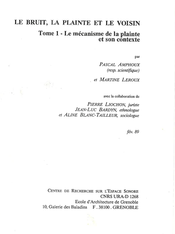 Le bruit , la plainte et le voisin, tome 1: le mécanisme de la plainte et son contexte