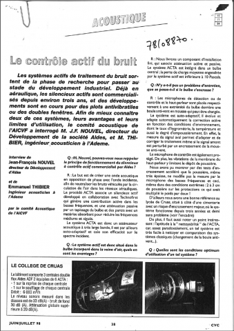 Les systèmes actifs de traitement du bruit passent au stade du développement industriel. Déjà en aéraulique, les silencieux actifs sont commercialisés depuis environ trois ans, et des développements sont en cours pour des plots antivibratiles ou des doubles fenêtres. Afin de mieux connaître deux de ces systèmes, leurs avantages et leurs limites d'utilisation, le comité acoustique de l'AICVF a interrogé Monsieur J-F. Nouvel, directeur du développement de la société ALDES et Monsieur Thibier, ingénieur acousticien à l'ADEME. -