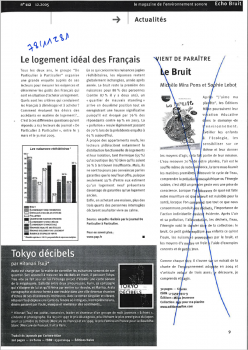 Résultat d'une enquête du journal "De particulier à Particulier réalisée en 2005 auprès de 2600 lecteurs. Le bruit apparaît en tête des nuisances jugées rédhibitoires avant l'absence d'espaces verts ou le mauvais standing -