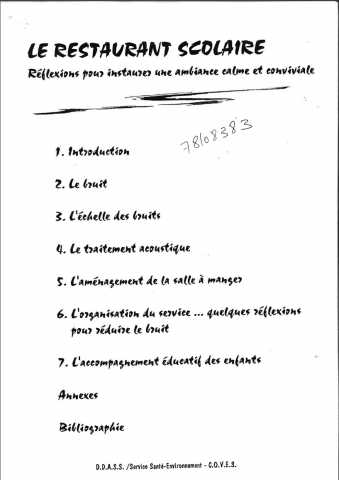 L'analyse des causes du bruit dans les restaurants scolaires permet de dégager des pistes de solutions, dans quatre directions : - le traitement acoustique du local ; - l'aménagement de la salle à manger ; - l'organisation du service ; - l'accompagnement éducatif des enfants. -