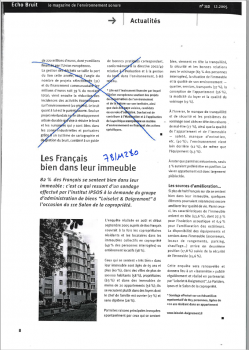 Résultats d'un sondage IPSOS réalisé pour le groupe d'administration de biens Loiselet et Daigremont. Les raisons de la satisfaction : en tête la tranquillité. Les sources possibles d'amélioration : l'isolation acoustique. -