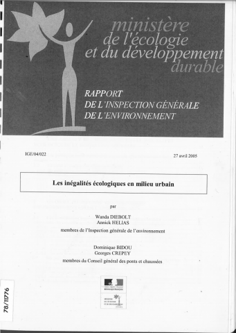 Présentation des inégalités de situation des urbains face à l'accès aux services publics de l'environnement, face à l'exposition aux risques, aux nuisances et aux pollutions, et par rapport à l'intégration plus ou moins grande des préoccupations environnementales dans les politiques urbaines. -