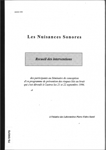 Les nuisances sonores seminaire pierre fabre sante castres 21 22 septembre 1996