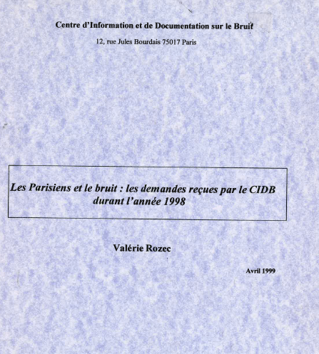 Etude du CIDB réalisée par la mairie de Paris, dans le cadre de l'Observatoire du Bruit à Paris, afin de connaître l'évolution des demandes d'information formulées par les Parisiens en 1999 dans la capitale. -