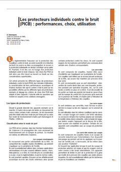 Les protecteurs individuels contre le bruit (PICB) : performances, choix, utilisation