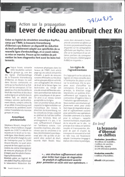 Grâce au logiciel de simulation acoustique RayPlus, conçu par l'INRS, la brasserie Kronenbourg d'Obernai a pu élaborer un dispositif de réduction parfaitement adapté aux spécificités de sa nouvelle ligne d'embouteillage, et ce avant même sa mise en marche. Preuve qu'en matière de prévention des bons diagnostics font aussi les bons traitements. Présentation des résultats -